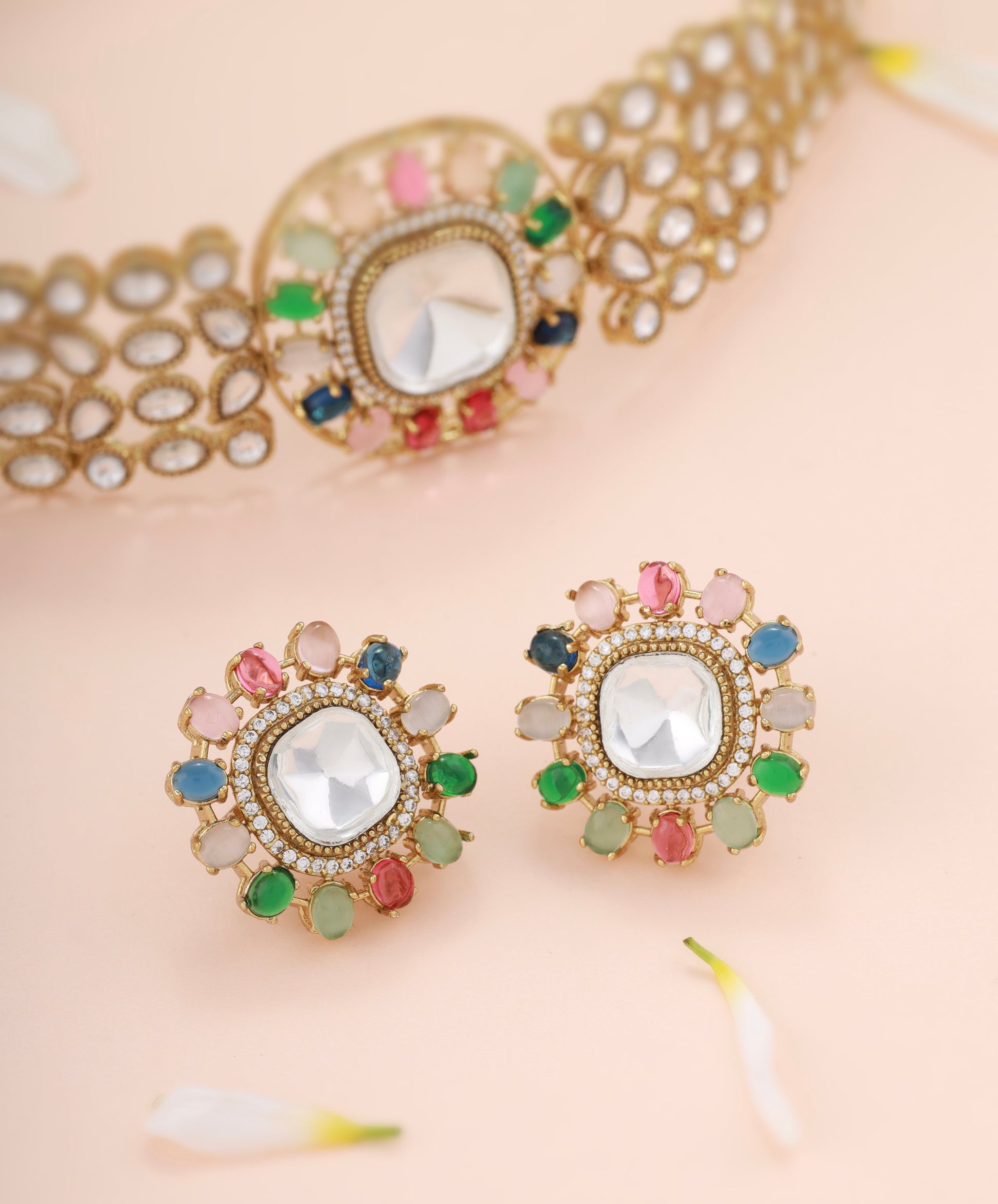 • Premium Kundan stones with vibrant multicolor detailing